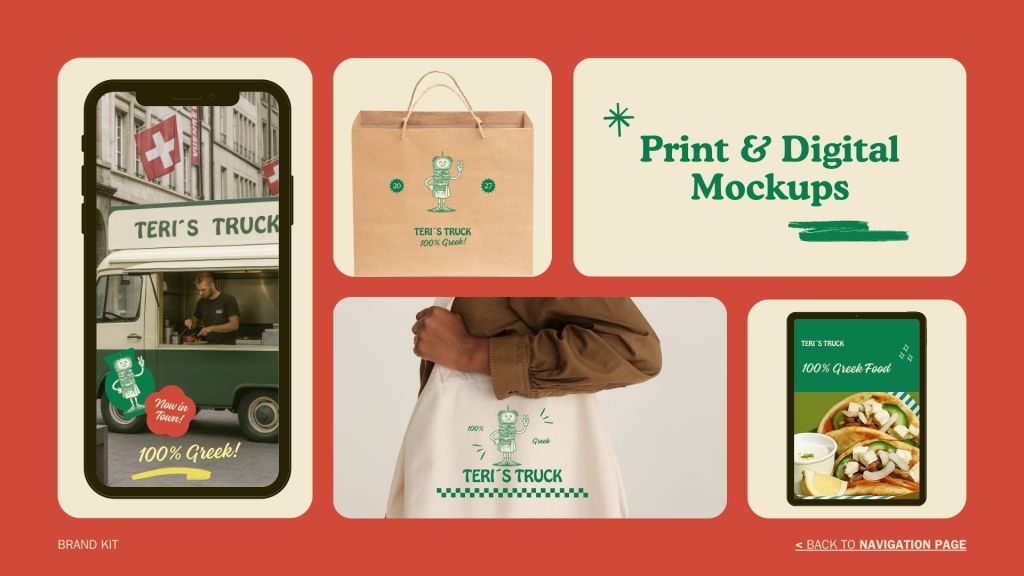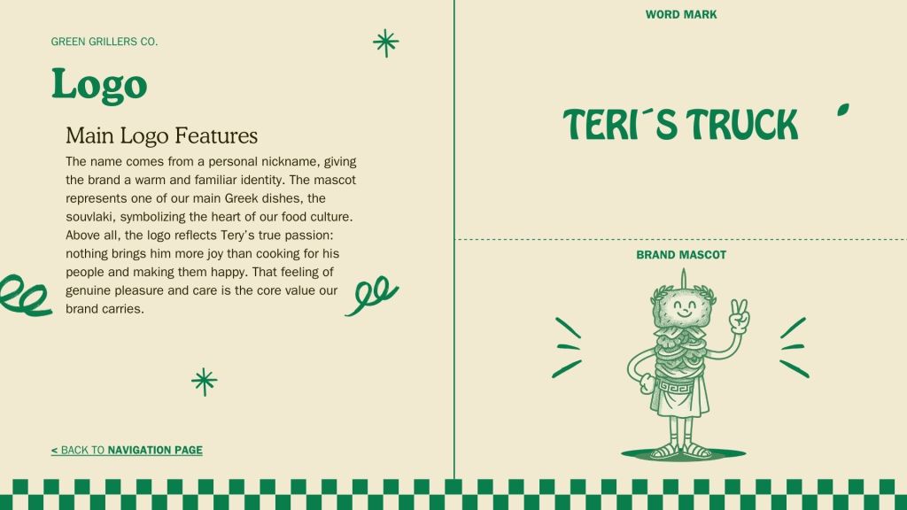 Teri’s Truck is a roaming Greek food concept that brings authentic flavors to different spots across the city. The brand identity blends warmth, tradition, and a relaxed playful tone inspired by classic Greek dishes. With fresh, quality ingredients and a friendly personality, Teri’s Truck stands out by offering original Greek food all day, wherever the truck goes.